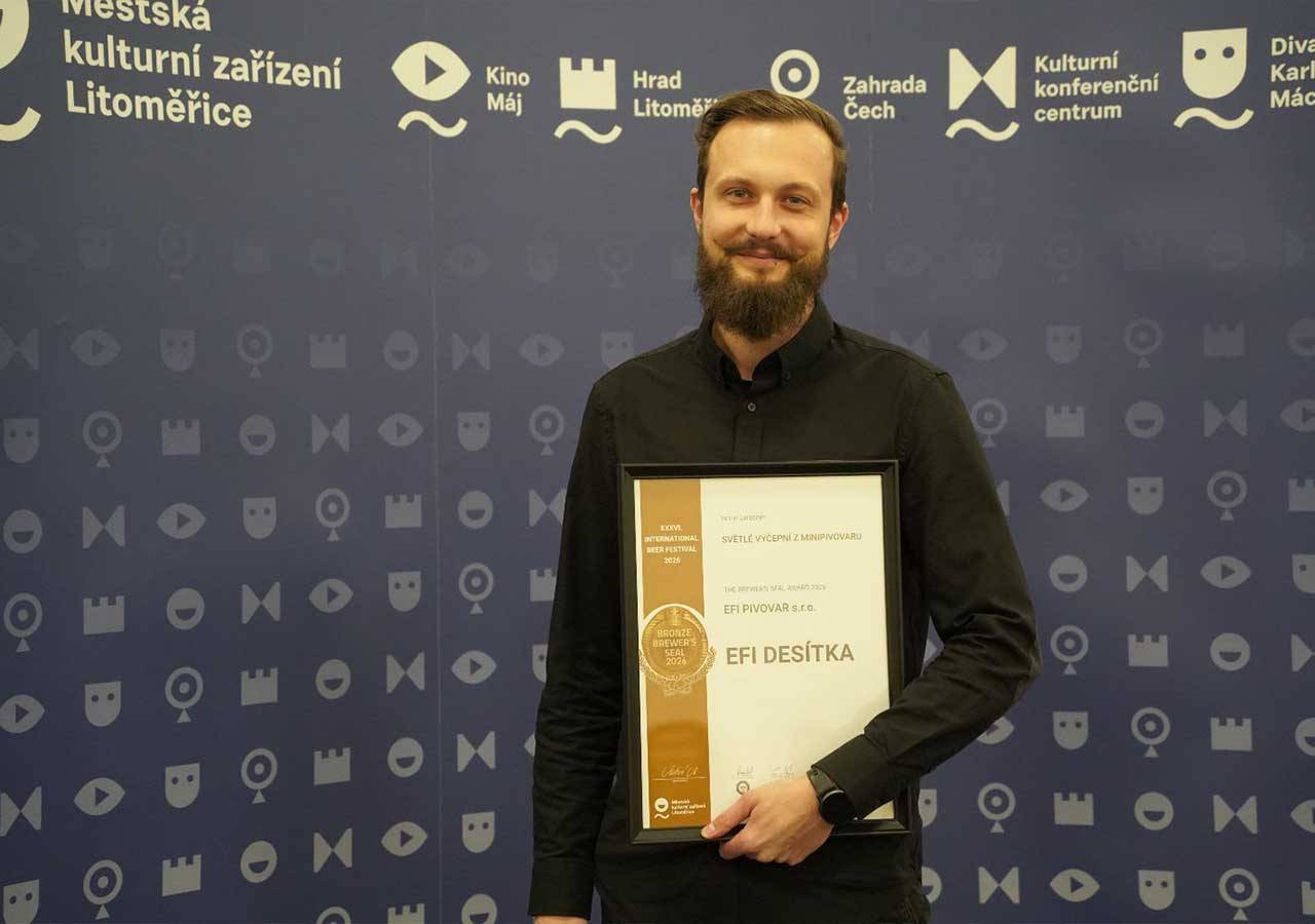 Taste the winner among beers from EFI Brewery. Our EFI Dvanáctka is awarded a silver medal on an international level. This award, which EFI Dvanáctka has received twice (first success in 2022, second in 2024), represents an important recognition for the EFI brand, ensuring that quality and taste are embodied in this golden drink.